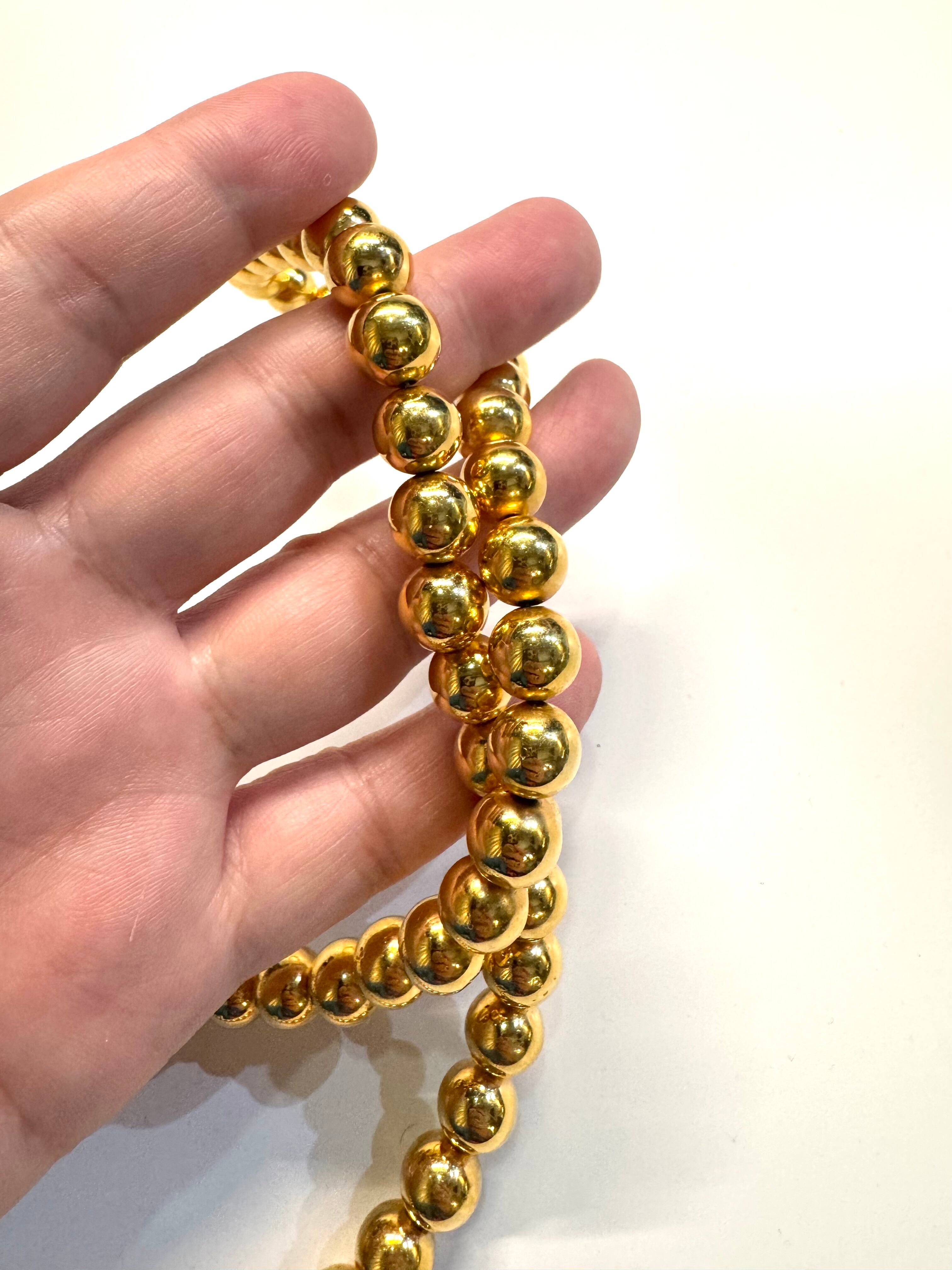 贅沢にも9N以上の純金メッキ10ミリのプラチナムシリカを60個使い、チタンの留め具でお仕立てしたネックレス。